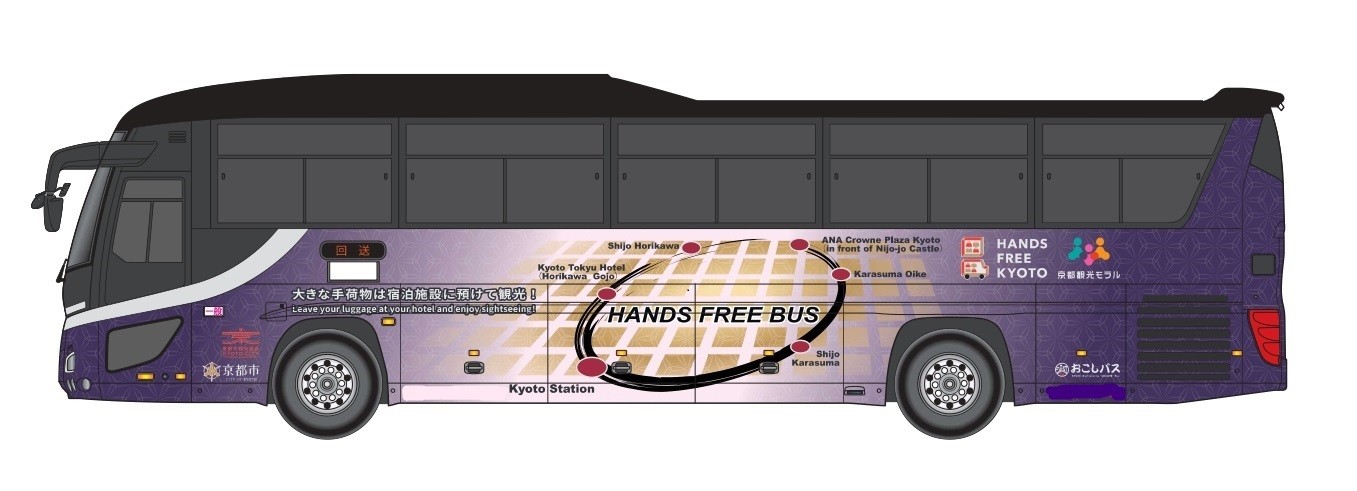 多くの観光客の来訪が見込まれる秋の観光シーズンにおいて、とりわけ大型手荷物を携行する観光客等を対象に、京都駅を起点に市内宿泊施設等を巡回する専用バス(HANDS FREE BUS)を運行します。