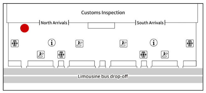 The location of JAL ABC counter in Kansai International Airport arrival lobby terminal 1.