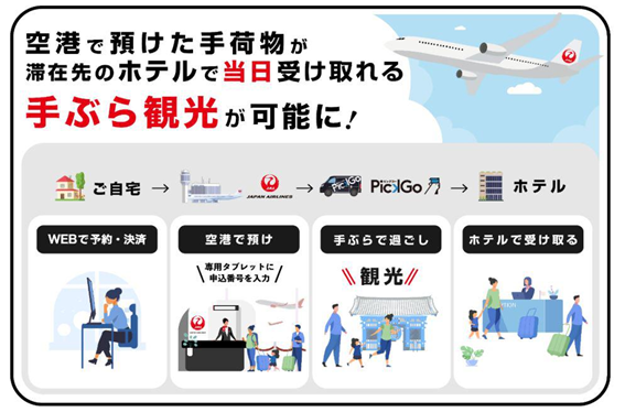JALは大阪(伊丹)空港ご到着後、京都市内のホテルを予約されているお客様に手荷物当日配送サービスを提供します。出発地の空港(航空機にご搭乗される空港)でスーツケースをお預け頂くと、当日19時を目途にホテルに荷物をお届けいたします。